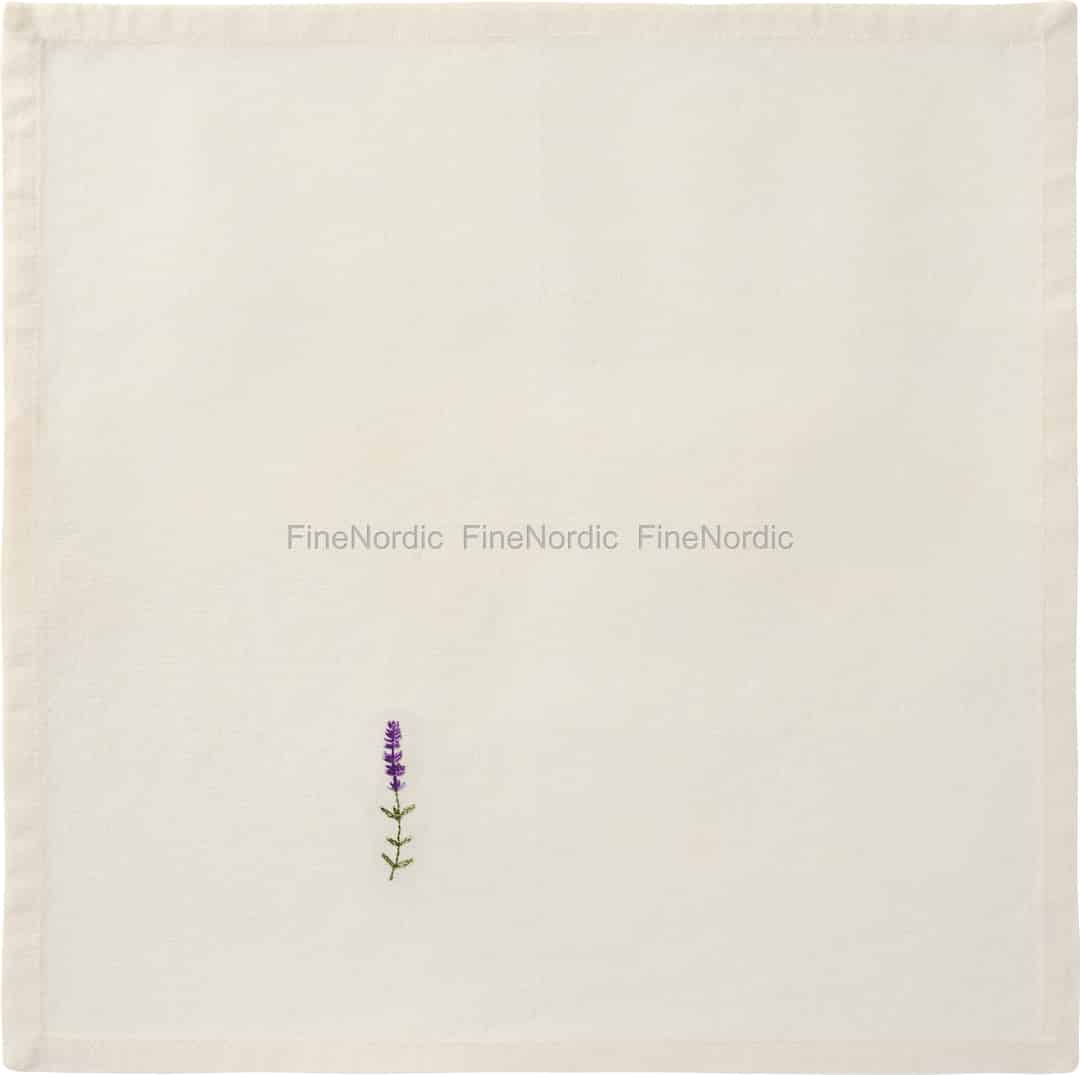 Stellen Sie sich einen Tisch vor, der mit schlichten, durchdachten Details gedeckt ist. Diese wunderschöne buttercremefarbene Serviette von Ib Laursen verleiht jeder Mahlzeit einen stillen Charme, wobei ein einzelner, zart gestickter Lavendelzweig einen Moment der Ruhe verspricht.