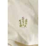 Sorgfältig aus weicher, langlebiger Baumwolle gefertigt, hat die Serviette eine wunderschöne Textur, die sich wunderbar in der Hand anfühlt. Die Qualität der Stickerei – von den sattgrünen Blättern bis hin zum winzigen Hauch einer lila Blüte – ist ein Zeugnis für die Liebe zum Detail von Ib Laursen. Ihre zurückhaltende Eleganz ermöglicht es ihr, wunderbar mit rustikalem Steingut oder strahlend weißem Porzellan kombiniert zu werden, was sie zu einer wahrhaft vielseitigen Ergänzung Ihrer Tischwäschekollektion macht.
