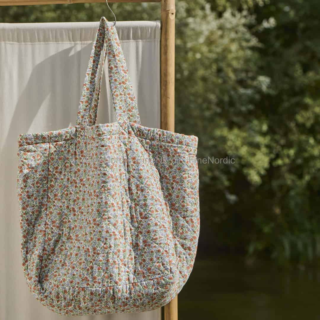 Entdecken Sie den sanften Charme des Landlebens mit dieser wunderschön weichen, gesteppten Tasche von Ib Laursen. Ihr zarter Blumendruck mit Nuancen von Hellblau und warmem Rostrot verleiht Ihren täglichen Wegen einen Hauch von Gelassenheit.