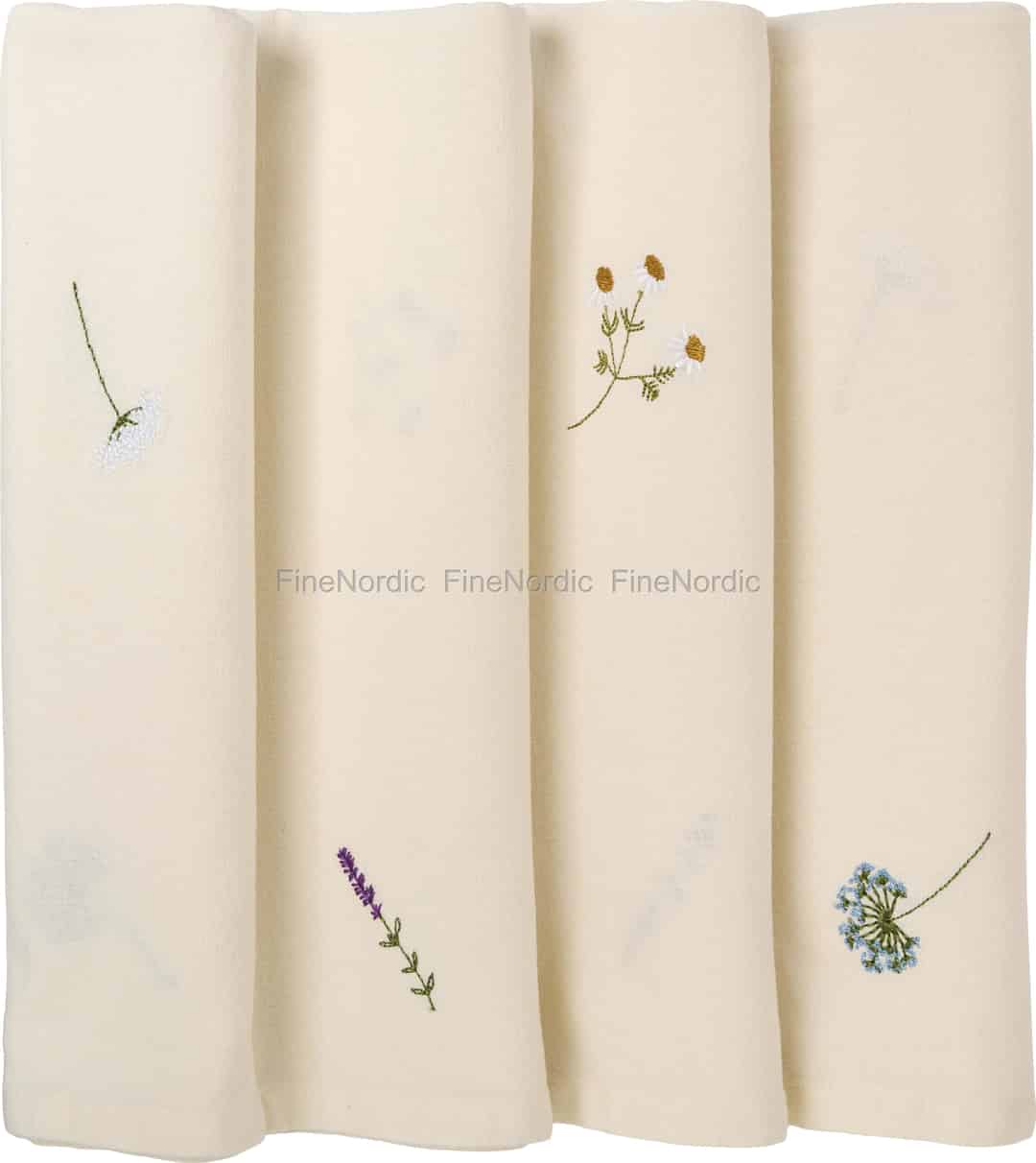 - Exquisite Wildblumenstickerei: Jede Decke ist mit vier verschiedenen, zart gestickten Wildblumen verziert, darunter Lavendel und Gänseblümchen, die Ihrer Tischdekoration einen einzigartigen, handgefertigten Charme verleihen.