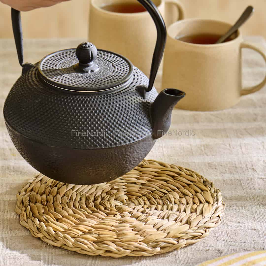 Stellen Sie sich vor, wie sanfter Dampf von Ihrer Lieblingsteekanne aufsteigt, die sicher auf einer wunderschön texturierten Oberfläche ruht. Dieser liebevoll geflochtene Untersetzer von Ib Laursen bringt einen Hauch rustikaler Wärme in Ihr Zuhause und schafft eine einladende Grundlage für die stillen Momente des Lebens.