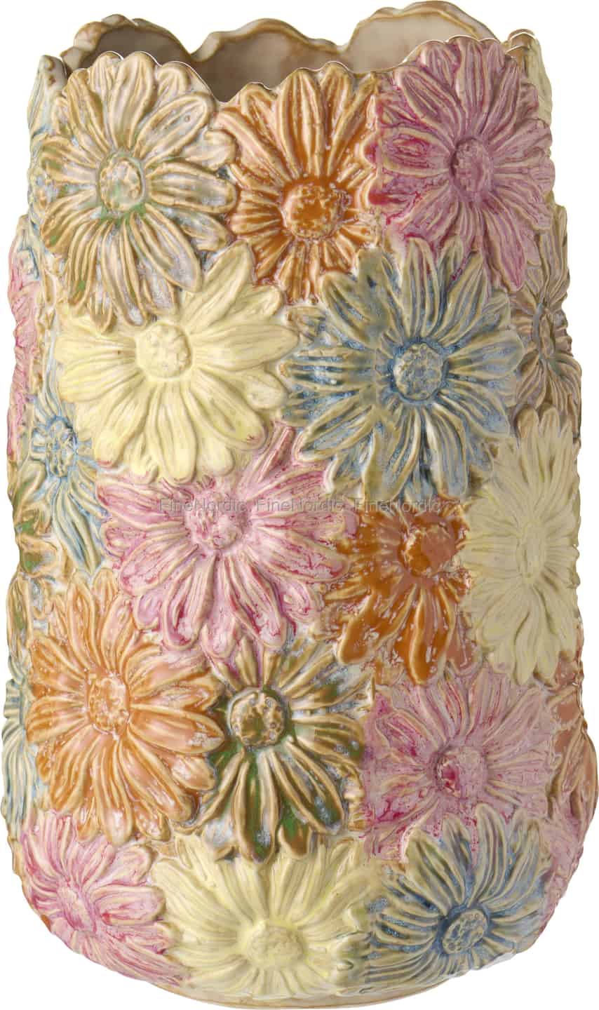 - Ein Design mit reizvoller Haptik: Bedeckt von einem Meer aus dreidimensionalen Gänseblümchen, bietet diese Vase eine einzigartige, fühlbare Textur, die Ihren Blumenarrangements eine verspielte und künstlerische Dimension verleiht.