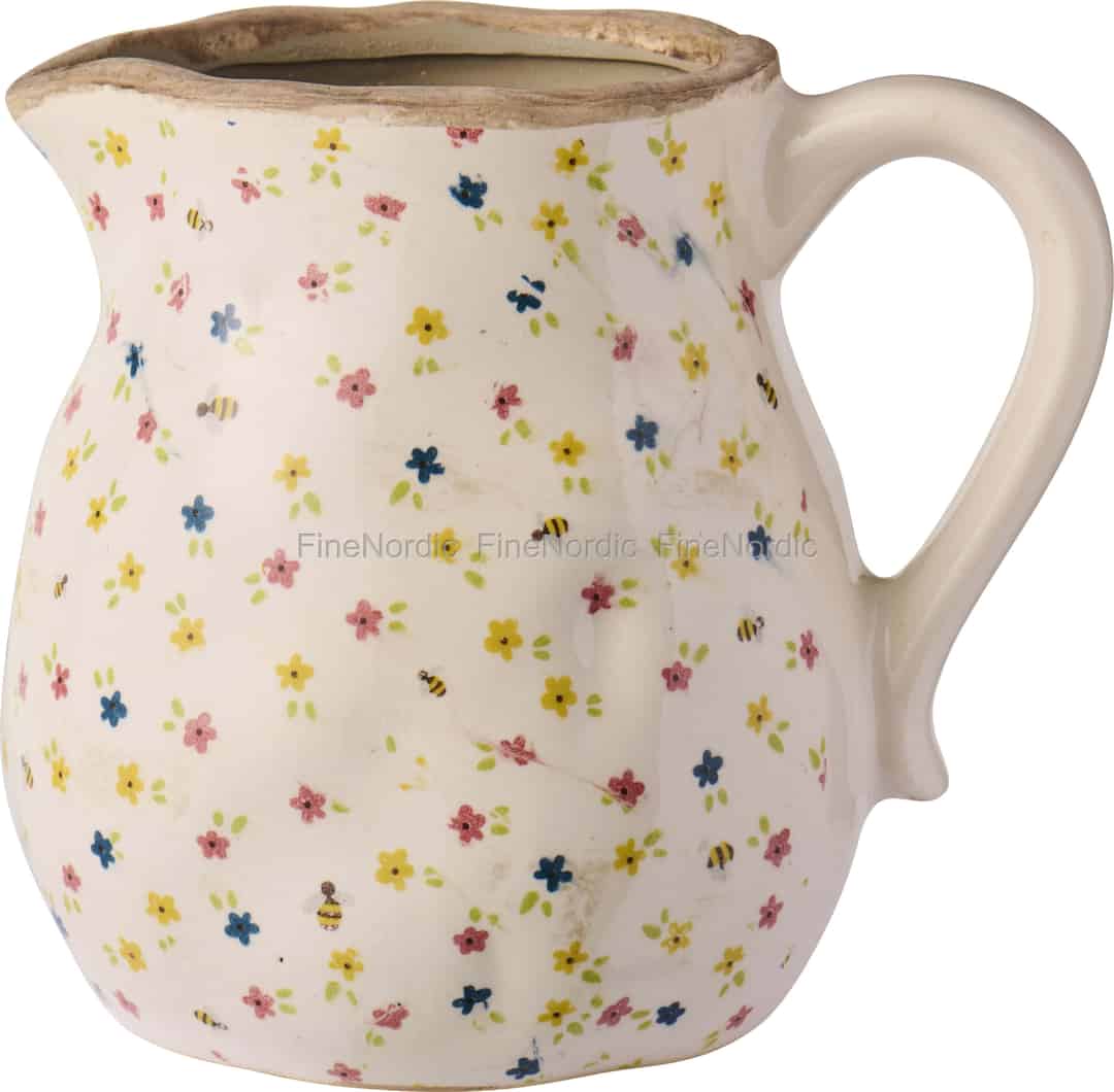 Die klassische Krugform mit ihrem stabilen Henkel und dem sanft geschwungenen Ausguss fühlt sich vertraut und behaglich an. Beachten Sie den rustikalen, unglasierten Rand – ein durchdachtes Detail, das einen wunderschönen Kontrast zum glänzenden Korpus bildet. Sie ist rein für dekorative Zwecke konzipiert und das perfekte Zuhause für Ihre liebsten Trockenblumenarrangements oder frisch geschnittenen Stiele und verleiht Ihrem Wohnraum sofort einen Hauch von heiterer Eleganz im Landhausstil. Bitte beachten Sie, dass dieses Stück nicht für Lebensmittel geeignet ist.