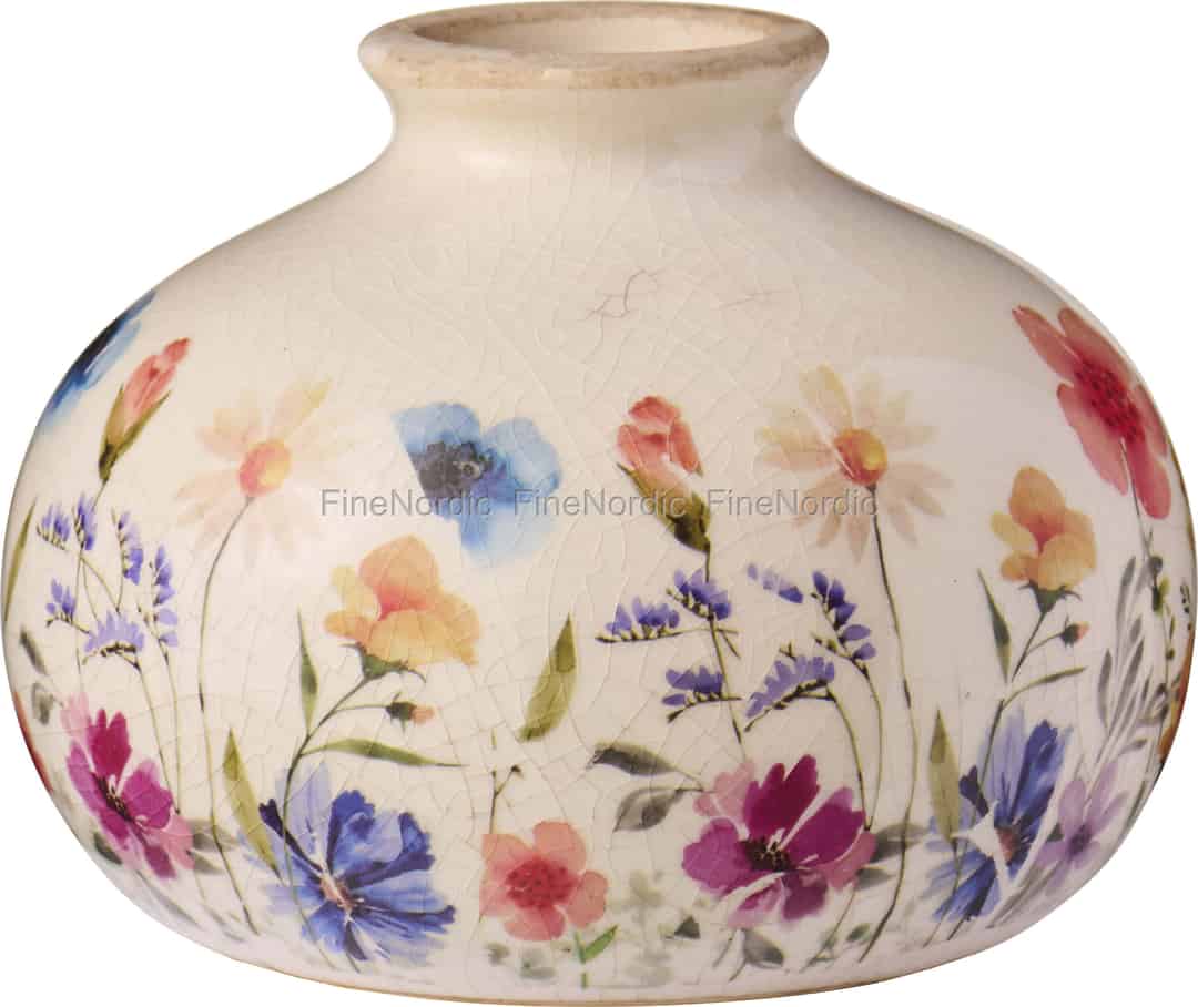 Stellen Sie sich eine sanfte Brise vor, die durch ein Feld voller Wildblumen streicht. Diese bezaubernde Keramikvase von Ib Laursen fängt genau diesen Moment ein und bringt mit ihren zarten Blüten im Aquarellstil die ungezähmte Schönheit einer Sommerwiese in Ihr Zuhause.