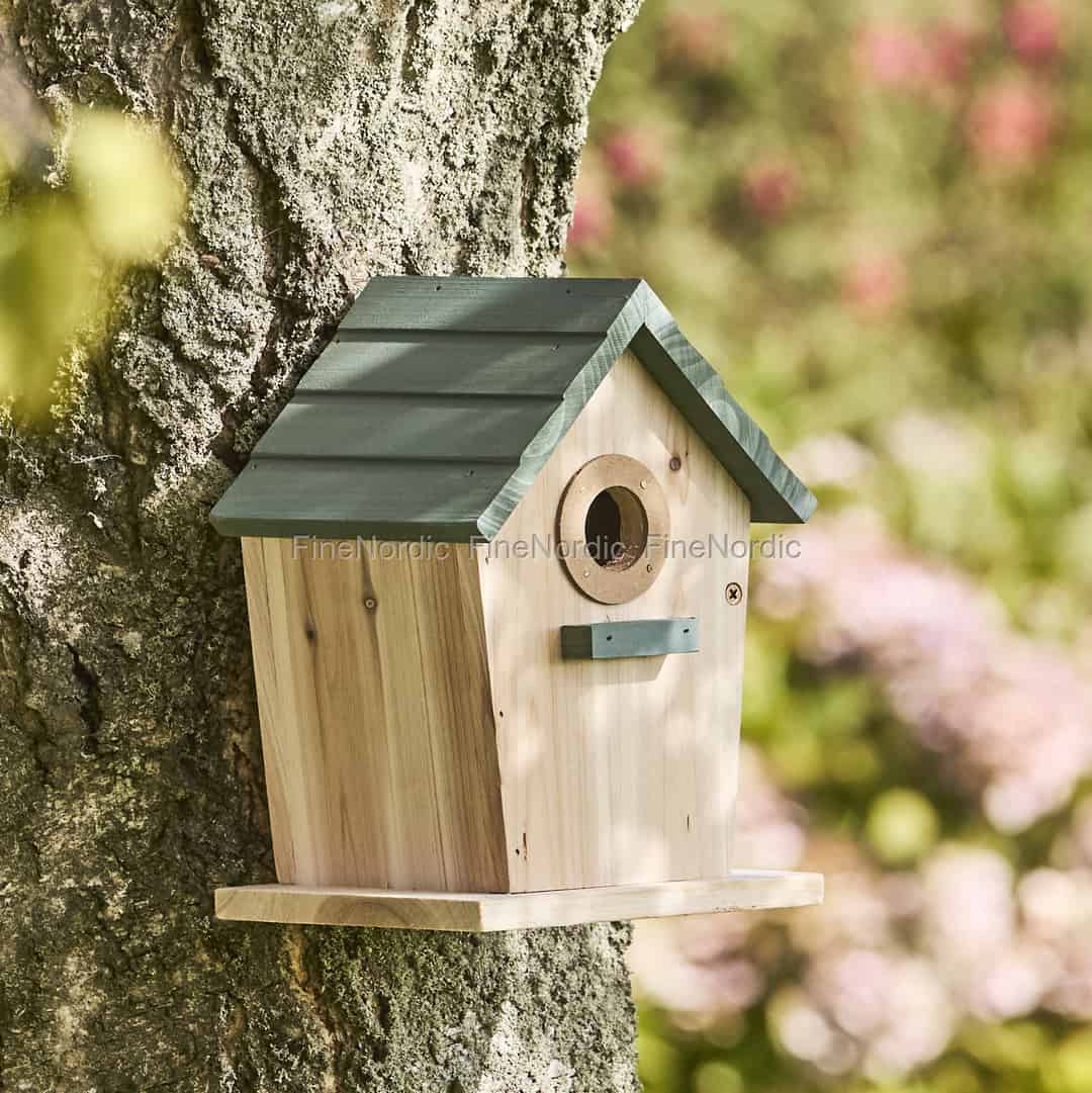 Ib Laursen Vogelhaus Natürliche Farbe - Blaues Dach Loch Ø:32 mm, Klappe an der Seite für Einfache Reinigung, finden Sie es hier bei FineNordic.