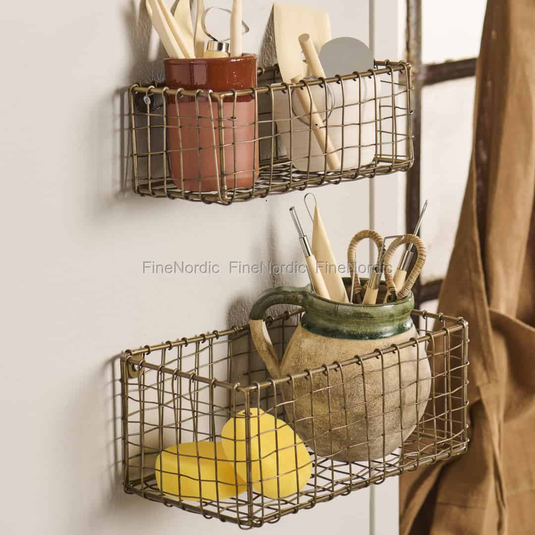 Aus dem Herzen des dänischen Designs präsentiert Ib Laursen eine einfache Lösung, um Harmonie und Stil in Ihr Zuhause zu bringen. Dieses Set aus zwei Drahtkörben verkörpert die nordische Überzeugung, dass praktische Dinge auch schön sein sollten. Das Metall ist mit einem wunderschönen antiken Goldfinish veredelt, das jeder Wand eine sanfte Wärme und einen Hauch von Vintage-Charakter verleiht. Ihr offenes Drahtdesign hält alles sichtbar und zugänglich und verwandelt alltägliche Notwendigkeiten in eine sorgfältig kuratierte Ausstellung. Es ist die Art von Organisation, die sich weniger wie eine lästige Pflicht anfühlt, sondern vielmehr wie ein Akt, der Ruhe schafft.