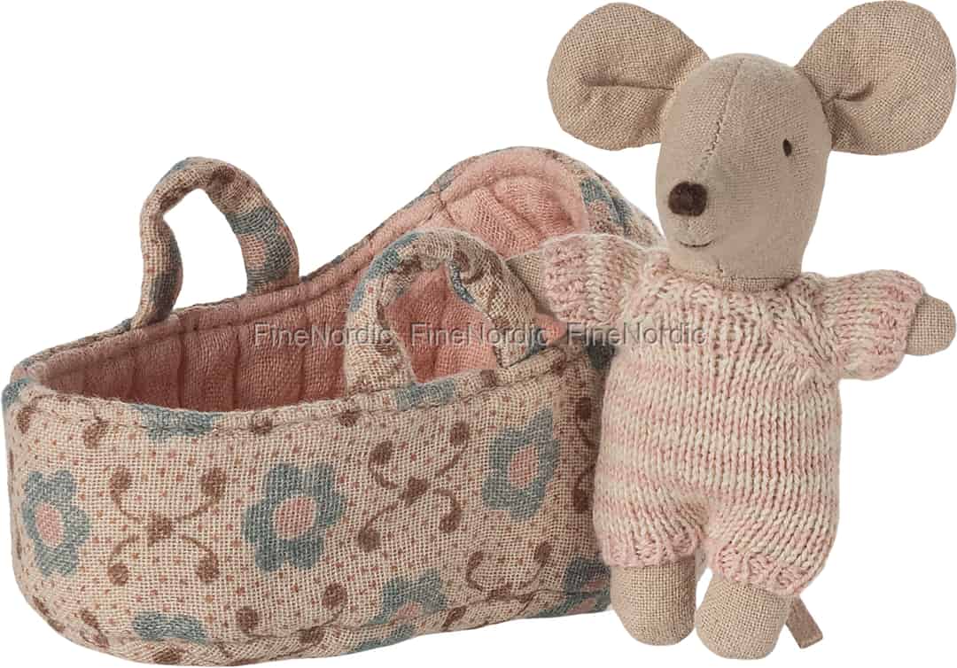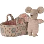Pst, das kleinste Mitglied der Maileg-Familie schläft. Fest eingekuschelt in eine weiche Tragetasche ist diese winzige Babymaus bereit für leise Abenteuer und geflüsterte Geheimnisse und bringt eine Welt voller zarter Geschichten in Ihr Zuhause.