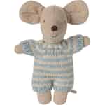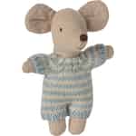 Entdecken Sie die bezaubernde Welt von Maileg mit dieser niedlichen Babymäuse, einer winzigen Freundin, die für große Abenteuer bestimmt ist. Gekleidet in einen wunderbar weichen, blau und cremefarben gestreiften Strickanzug, hat diese kleine Figur die perfekte Größe für kleine Hände und große Fantasien. Ihre sanften, gestickten Gesichtszüge und ihr weicher Stoffkörper verleihen ihr einen zeitlosen, handgemachten Charme, der zu endlosen Stunden des Geschichtenerzählens einlädt. Ob als stiller Begleiter am Nachmittag oder als neuestes Mitglied einer wachsenden Maileg-Familie, diese Maus ist bereit, ins Herz geschlossen zu werden.