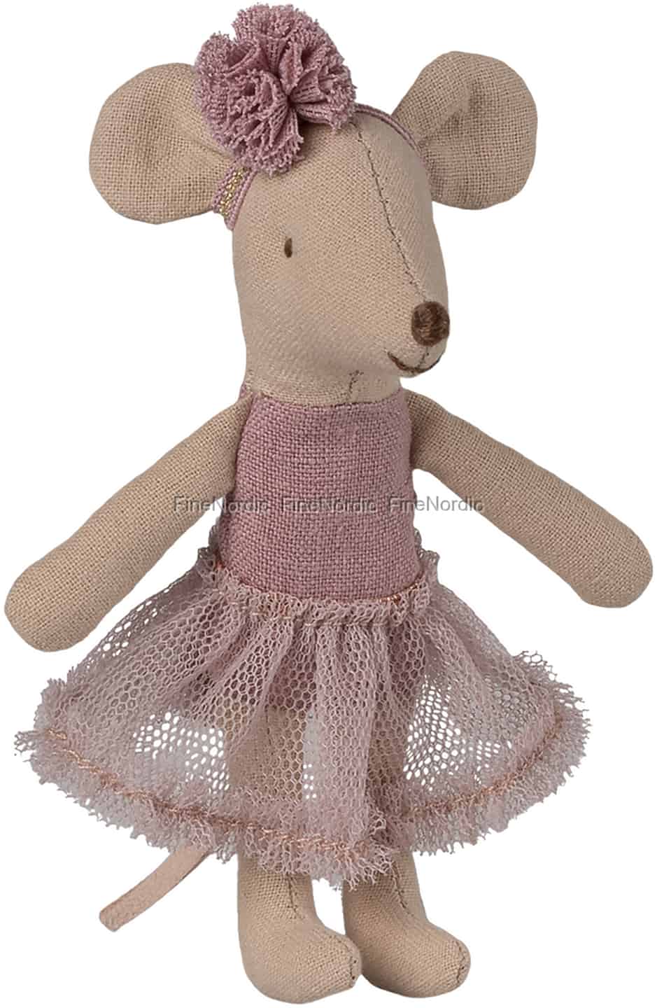 Als Teil der geliebten Maileg-Familie bringt diese Kleine Schwester Maus die Magie des klassischen skandinavischen Designs mit sich. Sie ist geschaffen, um zum Geschichtenerzählen anzuregen und die Art von fantasievollem Spiel zu fördern, das bleibende Erinnerungen schafft. Ob sie nun im Puppenhaus an der Ballettstange übt oder nach einer großen Vorstellung ins Bett gebracht wird, sie ist eine sanfte Einladung in eine Welt voller Wunder und Freundschaft.