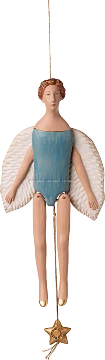 Laden Sie mit diesem wunderschönen Engel Hampelmann von Maileg ein Flüstern festlicher Magie in Ihr Zuhause ein. Ein sanfter Zug am goldenen Stern und seine Glieder tanzen und bringen einen Moment stiller Freude in Ihre Feierlichkeiten.