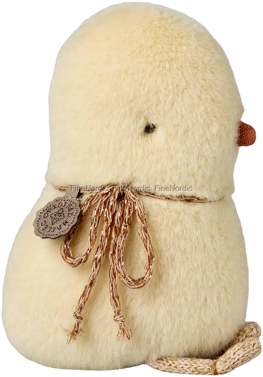 Aus der zauberhaften Welt von Maileg kommt ein Charakter, erfüllt vom sanften Geist des Frühlings. Dieses Mini-Hühnchen mit seinem unglaublich weichen, flauschigen Fell und seinem süßen, schlichten Ausdruck wartet darauf, Teil der kostbaren Momente Ihrer Familie zu werden. Jedes Detail wurde sorgfältig bedacht, von seinem winzigen braunen Schnabel bis zur eleganten, schimmernden Kordel, die ordentlich um seinen Hals gebunden ist – ein Zeichen seines besonderen Platzes in der Maileg-Kollektion. Es sitzt stolz auf seinem funkelnden, gestrickten Sockel, bereit für Abenteuer.