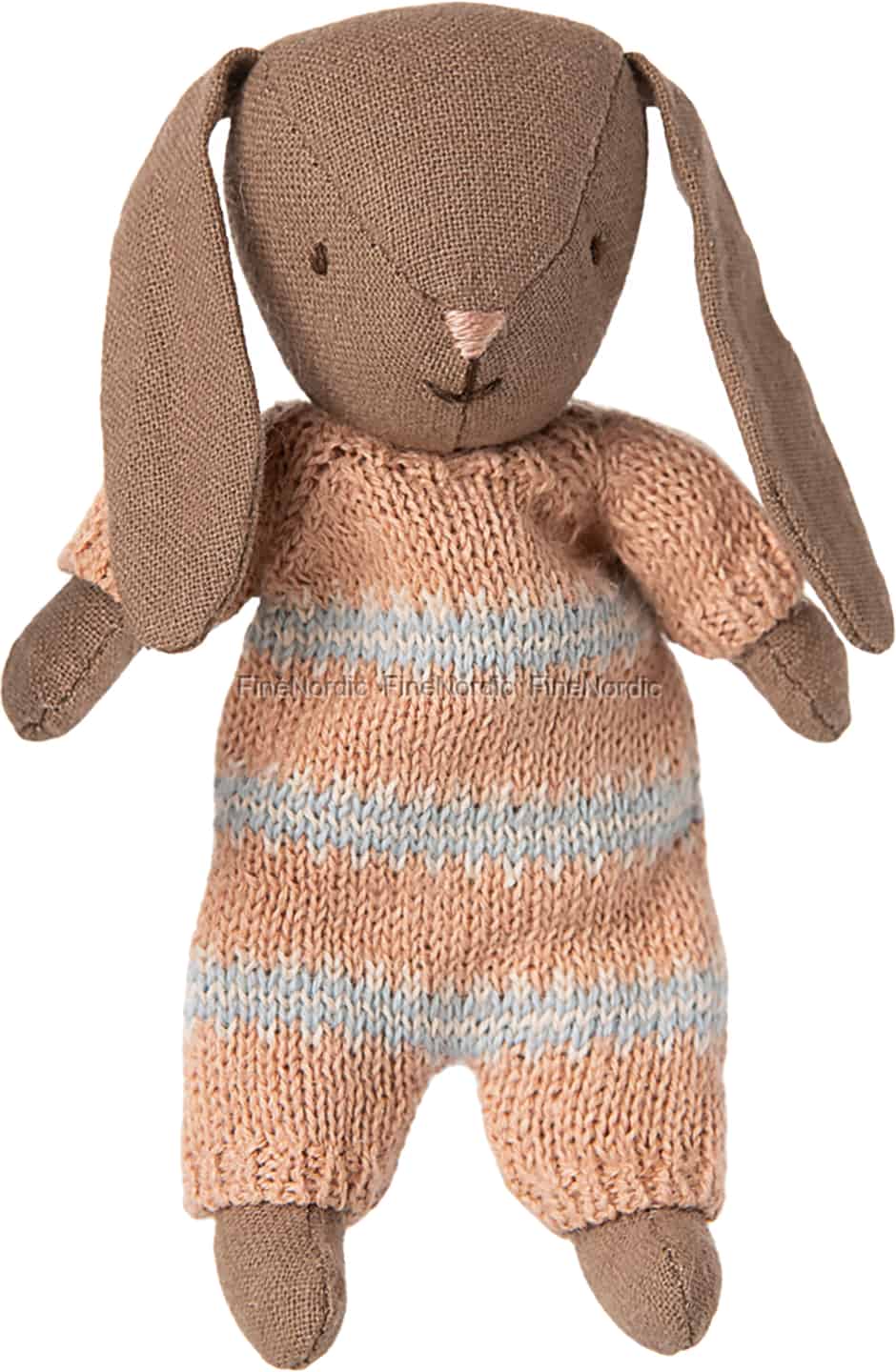 In der zauberhaften Welt von Maileg haben selbst die kleinsten Freunde die größten Herzen. Dieser süße braune Hase, gekleidet in einen weichen, gestreiften Anzug in Altrosa und Hellblau, ist bereit, zu einer geliebten Figur in den fantasievollen Geschichten Ihres Kindes zu werden. Sein sanfter Ausdruck und die Schlappohren laden zu leisen Gesprächen und geteilten Geheimnissen ein und machen ihn zu einem wunderbaren ersten Begleiter für kleine Geschichtenerzähler. Von morgendlichen Kuscheleinheiten bis zu nachmittäglichen Abenteuern im Puppenhaus ist dieser Hase ein beständiger, tröstender Freund.