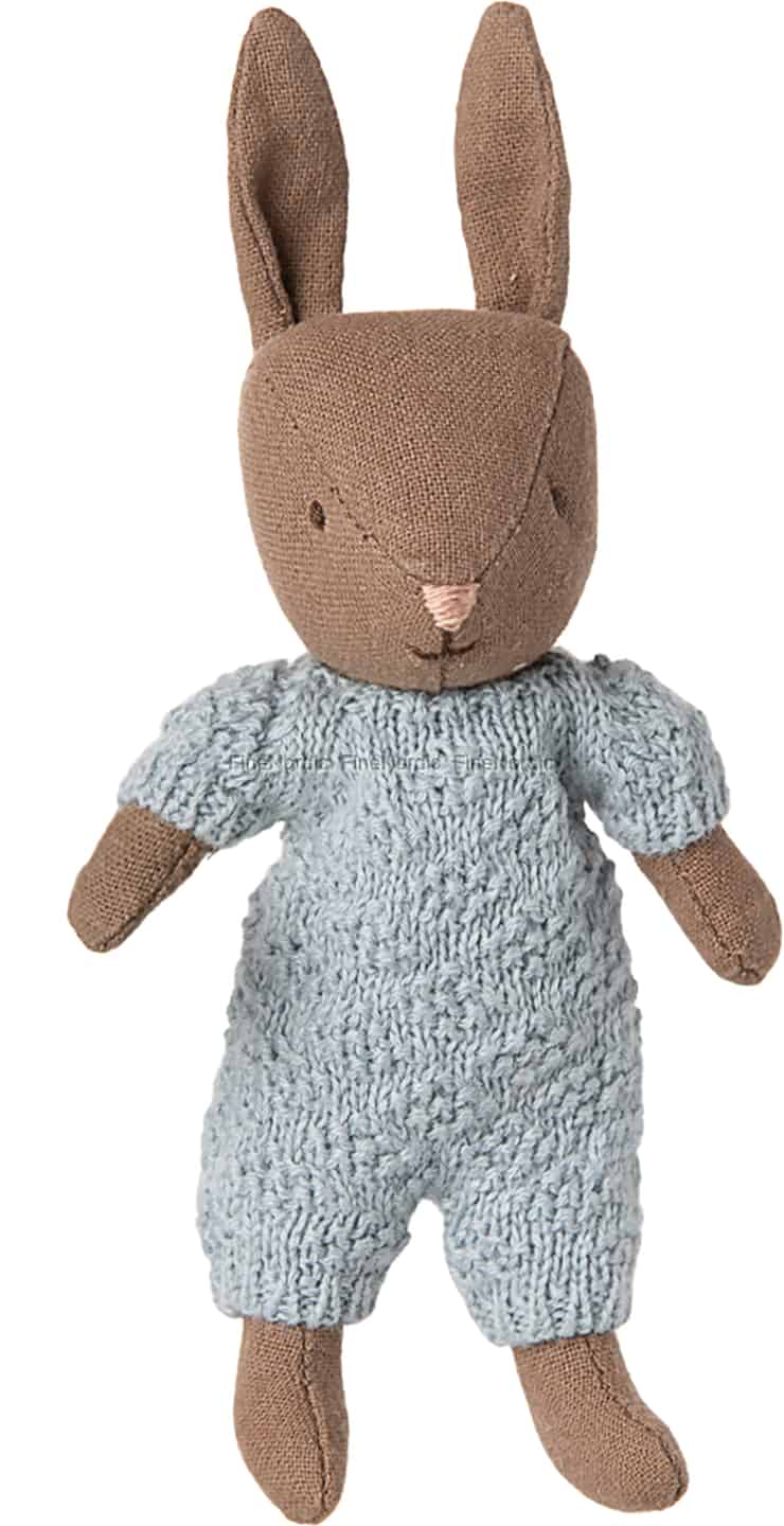 Öffnen Sie die Tür zu einer Welt voller Wunder mit diesem süßen Micro-Hasen von Maileg. Gekleidet in einen kuscheligen, handgestrickten blauen Anzug, ist dieser kleine Freund perfekt für kleine Hände und große Geschichten geschaffen und wartet nur darauf, ein treuer Begleiter zu werden.