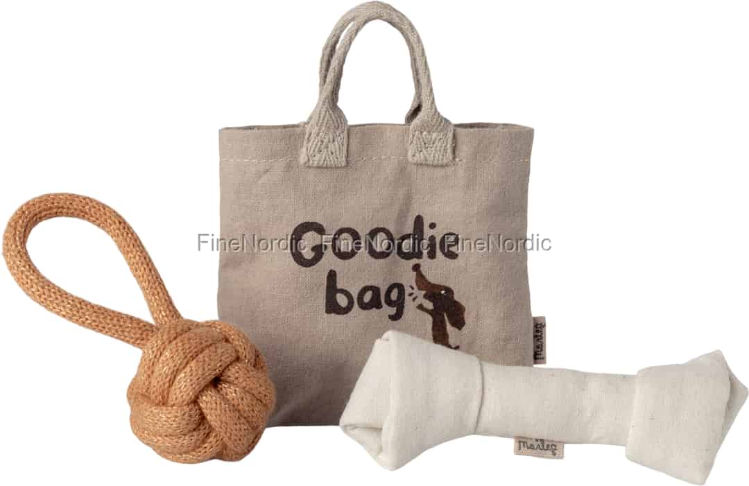 Jetzt können Ihre Maileg-Charaktere die Freude erleben, sich um ihr eigenes Haustier zu kümmern. Dieses bezaubernde Set erweckt diese Geschichte mit charmanten, perfekt skalierten Accessoires zum Leben. Stellen Sie sich vor, wie sie die kleine 'Goodie bag' für einen Ausflug in den Park packen, bereit für ein Apportierspiel mit dem goldenen Seilspielzeug. Der weiche, kaubare Knochen ist die perfekte Belohnung für einen braven Welpen und entfacht süße Momente der Fürsorge und Freundschaft. Es sind diese winzigen Details, die die Spielzeit in eine Welt voller herzlicher Geschichten verwandeln.
