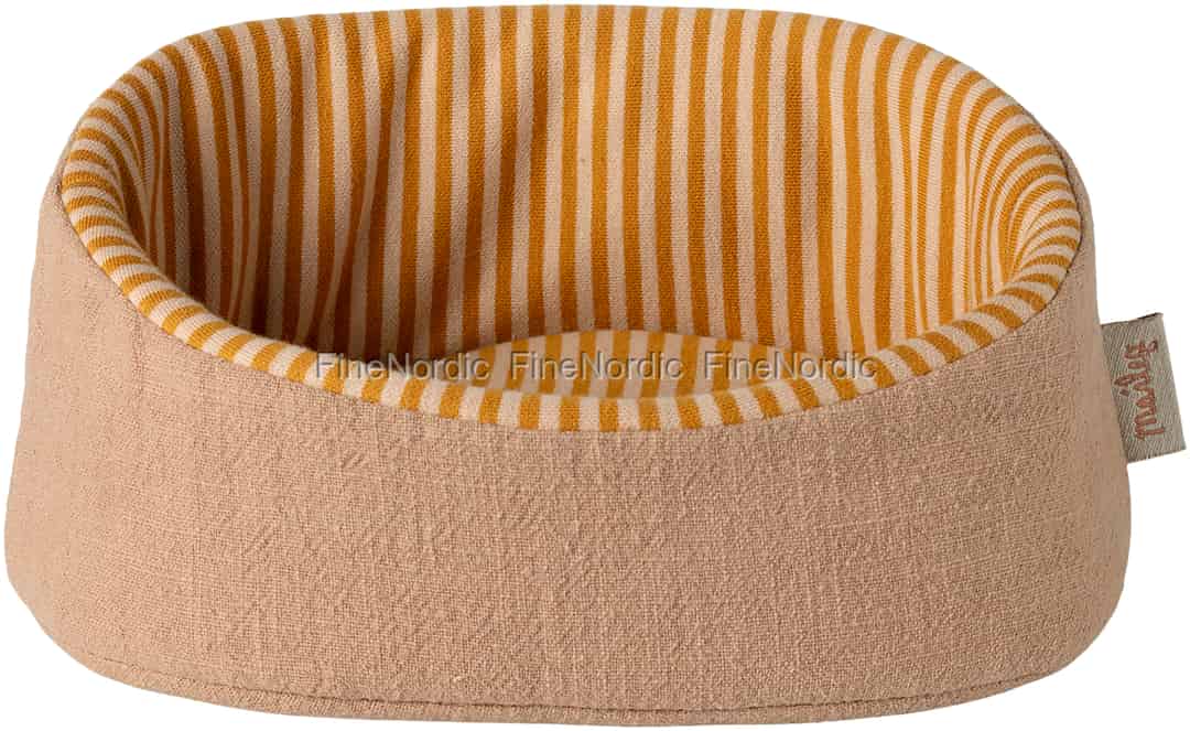 Gefertigt mit dem unverkennbaren Charme, für den Maileg bekannt ist, hat die robuste, puderbeige Außenseite des Korbes eine wunderbare, griffige Haptik. Im Inneren schafft das warme, senfgelb gestreifte Futter einen fröhlichen und einladenden Raum. Das ikonische Maileg-Etikett an der Seite ist ein leises Versprechen für Qualität und authentisches Design und stellt sicher, dass dieses kleine Bett für viele Jahre der Schauplatz unzähliger glücklicher Erinnerungen sein wird.