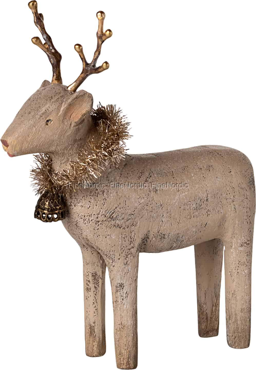 Heißen Sie einen stillen Moment festlicher Wunder in Ihrem Zuhause willkommen mit diesem bezaubernden Holz-Rentier von Maileg. Mit seinem sanften Ausdruck und rustikalen Finish scheint es direkt aus einem skandinavischen Winterwald gewandert zu sein, um an Ihren Feierlichkeiten teilzunehmen.