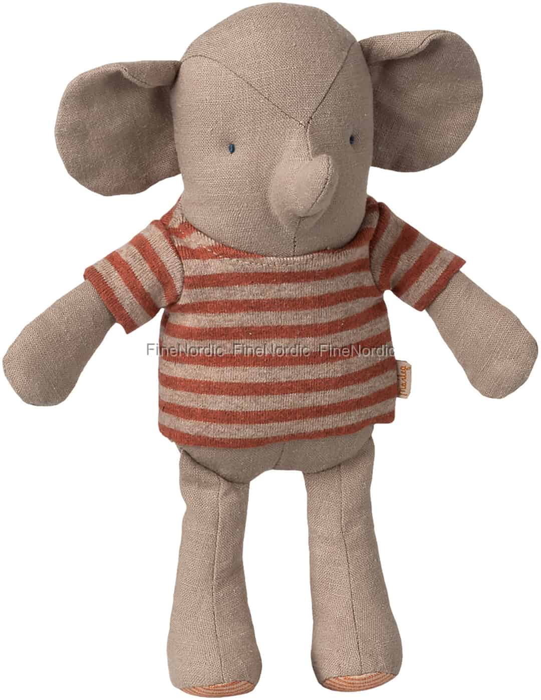 Dürfen wir vorstellen: Kleiner Jumbo, ein schüchterner und sanfter Freund mit den weichsten Ohren, die allen Geheimnissen lauschen. Dieser süße Elefant von Maileg ist bereit, ein geschätzter Teil der Fantasiewelt Ihres kleinen Lieblings zu werden.