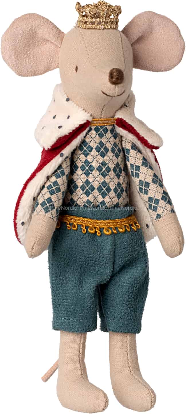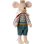 In den prunkvollen Sälen eines Miniaturschlosses wartet ein gütiger und edler Herrscher. Lernen Sie den Maileg König Papa Maus kennen, einen bezaubernden Charakter, der bereit ist, über große Feste zu wachen und einen Hauch von Märchenzauber in Ihr Zuhause zu bringen.