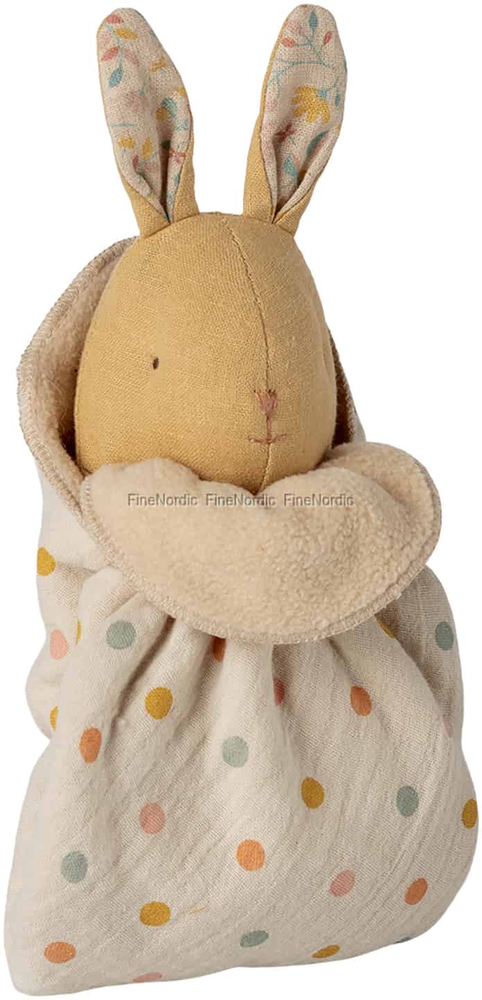 Eingekuschelt in seinen eigenen Schlafsack mit Pünktchenmuster und einem wunderbar weichen Kragen ist dieser kleine Hase immer bereit für ein Nickerchen. Die sanften, gedeckten Farben und die vielfältigen Texturen laden kleine Finger zum Entdecken ein. Gefertigt mit der zeitlosen Qualität, für die Maileg bekannt ist, ist dieser Hase mehr als ein flüchtiges Spielzeug – er ist der Beginn einer wunderbaren Freundschaft, ein geliebter Charakter in der Geschichte deiner Familie.