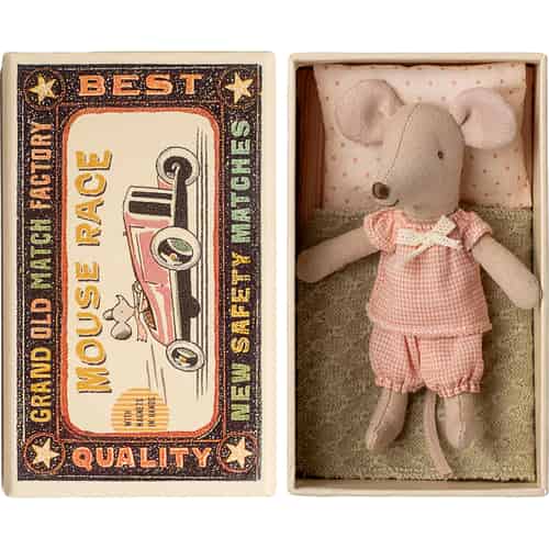 Hier finden Sie die süßen Maileg Mäuse zum Spielen und Sammeln. Die kleinen Stoffmäuschen sind exzellente Spielkameraden und Einschlafhelfer zum Kuscheln und Liebhaben. Sie wurden mit viele Liebe zum Detail kreiert und dank Ihrer guten Qualität werden Ihre lieben Kleinen lange Freude an Ihnen haben. Wie wäre es mit einer kleinen Maus in passender Streichholzschachtel mit Decke, Kissen und Matratze für den Nachttisch oder für unterwegs? Ein kleiner Maileg Mäuschenengel als Geschenk zur Geburt oder zur Taufe? Die süßen Mäuse sind wunderbare Geschenke für liebe Freunde und Familie und natürlich ganz besonders für die eigenen geliebten Sprösslinge.