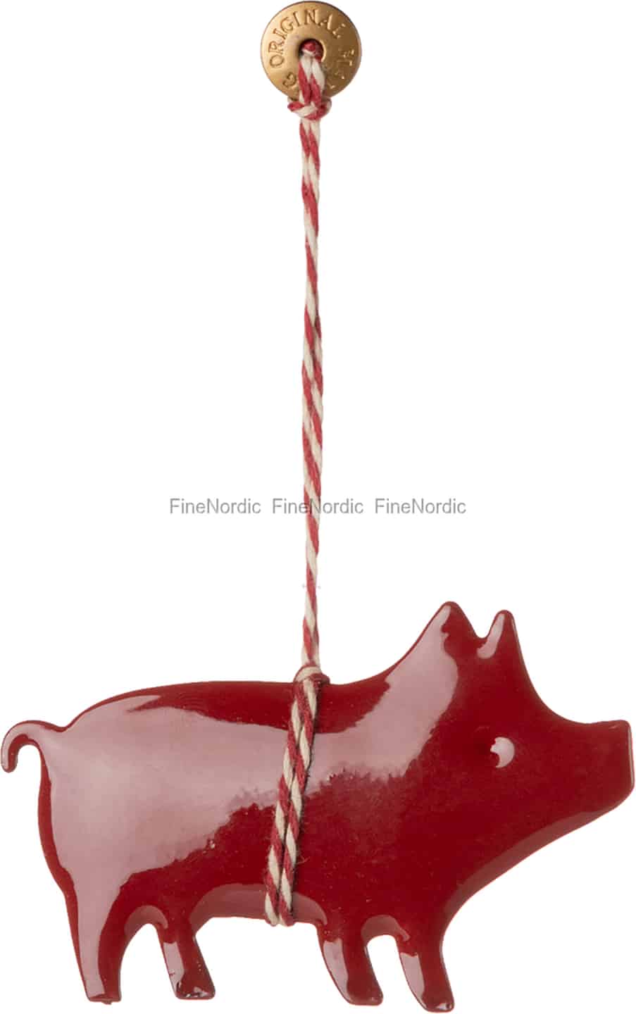 Stellen Sie sich vor, wie der sanfte Schein der Lichterketten sich im glänzend roten Lack dieses bezaubernden Schweinchen-Ornaments fängt. Als entzückender Charakter von Maileg bringt es einen Hauch klassischer dänischer Folklore und herzliche Wärme in Ihre Festtagsdekoration.