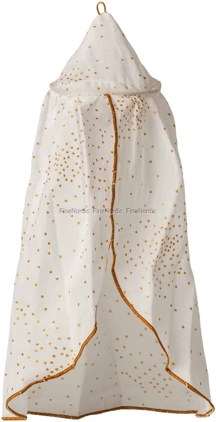 Wenn die Dämmerung hereinbricht, betten Sie Ihren kleinen Maileg-Freund unter einem Baldachin aus schimmerndem Gold zur Ruhe. Dieses wunderschöne Accessoire verwandelt seine Schlafecke in einen verzauberten Zufluchtsort, bereit für die süßesten Träume.