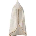 Jeder geliebte Maileg-Freund verdient einen besonderen Platz, um sein Haupt zur Ruhe zu betten. Dieser exquisite Miniatur-Betthimmel verwandelt ein einfaches Bett in ein königliches Schlafgemach oder eine magische Lichtung. Der weiche, cremeweiße Stoff fällt wunderschön und ist mit schimmernden Goldsprenkeln übersät, die das Licht wie ferne Sterne einfangen. Eine zarte, geflochtene Goldkordel säumt die Ränder und verleiht diesem bezaubernden Stück den letzten Hauch von Märchencharme.