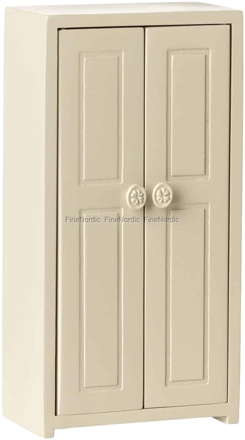 Bringe mit diesem exquisiten Miniatur-Kleiderschrank einen Hauch von klassischem skandinavischem Design in deine Maileg-Welt. Seine schlichten, eleganten Linien und Kassettentüren, in einem sanften Cremeton lackiert, erinnern an den Charme eines echten Familienerbstücks, das sorgfältig für deine kleinsten Freunde verkleinert wurde. Die kleinen, mit Blumenmotiven geschnitzten Knöpfe sind eine wahre Freude zu entdecken und laden kleine Hände ein, die Türen zu öffnen und einen Blick auf die darin verborgenen Schätze zu werfen. Es ist ein Stück, das sich sowohl verspielt als auch wunderschön verarbeitet anfühlt.