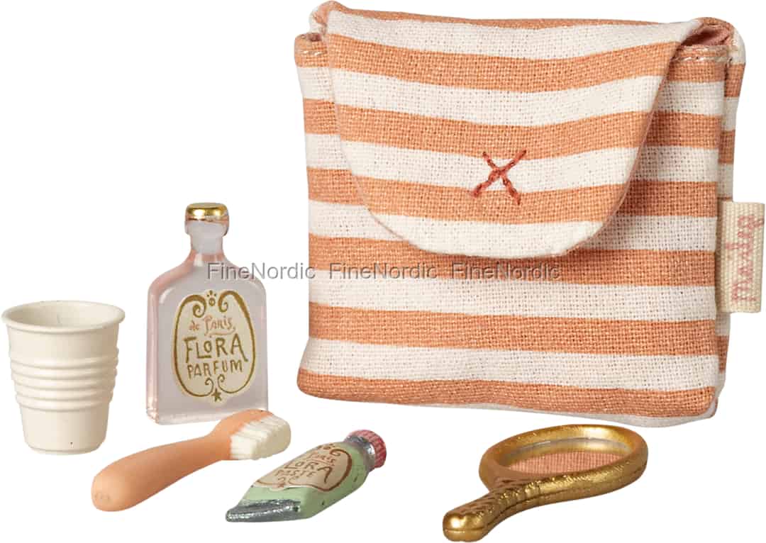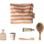 Helfen Sie Ihrem Maileg-Freund, sich mit diesem zauberhaften kleinen Set auf den kommenden Tag vorzubereiten. In einer weichen, korallenrot gestreiften Tasche verbirgt sich alles, was er für seine Morgen- und Abendroutine braucht, und regt zu stundenlangem fantasievollem Spielen an.