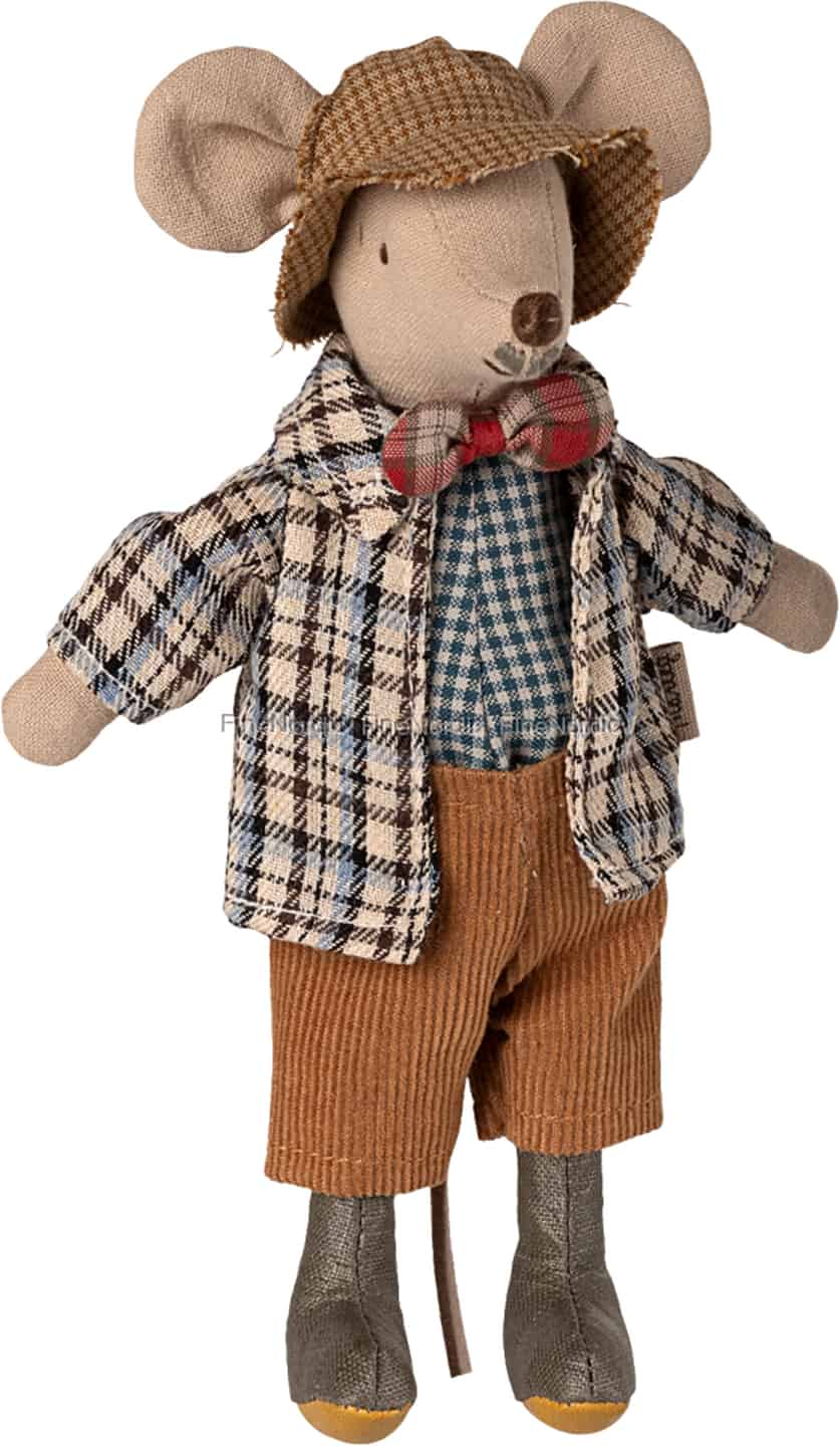 Jede Familie hat einen Geschichtenerzähler, und in der Welt von Maileg ist es die wunderbar weise Opa Maus. Sein freundlicher Ausdruck und sein adrettes Outfit – vom kecken Tweedhut bis zu den robusten Stiefeln – deuten auf ein Leben voller sanfter Abenteuer und gelernter Lektionen hin. Er ist derjenige, der sich an jeden Geburtstag erinnert, den besten Platz für Walderdbeeren kennt und zur Schlafenszeit immer eine tröstende Geschichte parat hat.