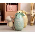 Maileg interpretiert die Magie der Ostereiersuche neu – mit einem Geschenk, das dazu bestimmt ist, noch lange nach den Feiertagen in Ehren gehalten zu werden. Dieses exquisite Metallei, dekoriert in einem ruhigen Minzton mit den verspielten Silhouetten springender Hasen, ist schon für sich ein kleiner Schatz. Lösen Sie das weiche grüne Band, um das wahre Geheimnis zu lüften: ein wunderbar weiches Mikrolamm, das mit einem freundlichen Lächeln im Inneren wartet. Eine entzückende Überraschung, die sofort Freude und fantasievolle Geschichten weckt.
