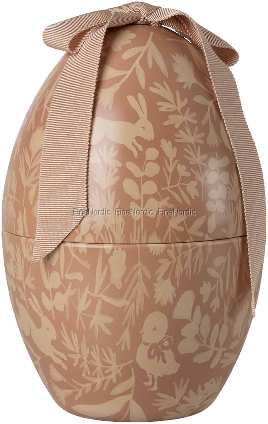 Treten Sie ein in die wunderliche Welt von Maileg, in der jedes Detail eine Geschichte erzählt. Dieses exquisite Osterei in einem sanften Puderbeige ist eine Leinwand für bezaubernde Szenen aus dem Waldleben. Springende Häschen und ein süßes Küken schmiegen sich an zarte Pflanzen und rufen die stille Freude eines Frühlingsmorgens hervor. Die langlebige Metallkonstruktion fühlt sich wertig an und verspricht, über Jahre hinweg ein Teil der Familientraditionen zu sein. Versehen mit einem eleganten Ripsband, ist es ein Stück klassischen skandinavischen Designs.