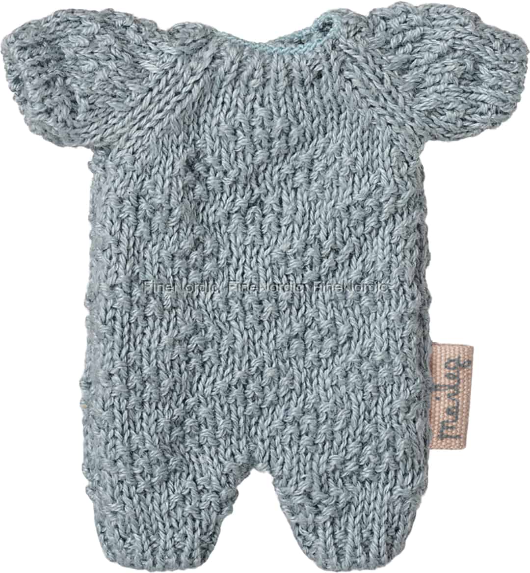 Halte deinen kleinen Maileg Freund wunderbar warm in diesem wunderschön gefertigten Strickanzug. Sein sanfter, staubblauer Farbton und die bezaubernde Textur laden zu endlosen Momenten des stillen Spiels und liebevoller Fürsorge ein.