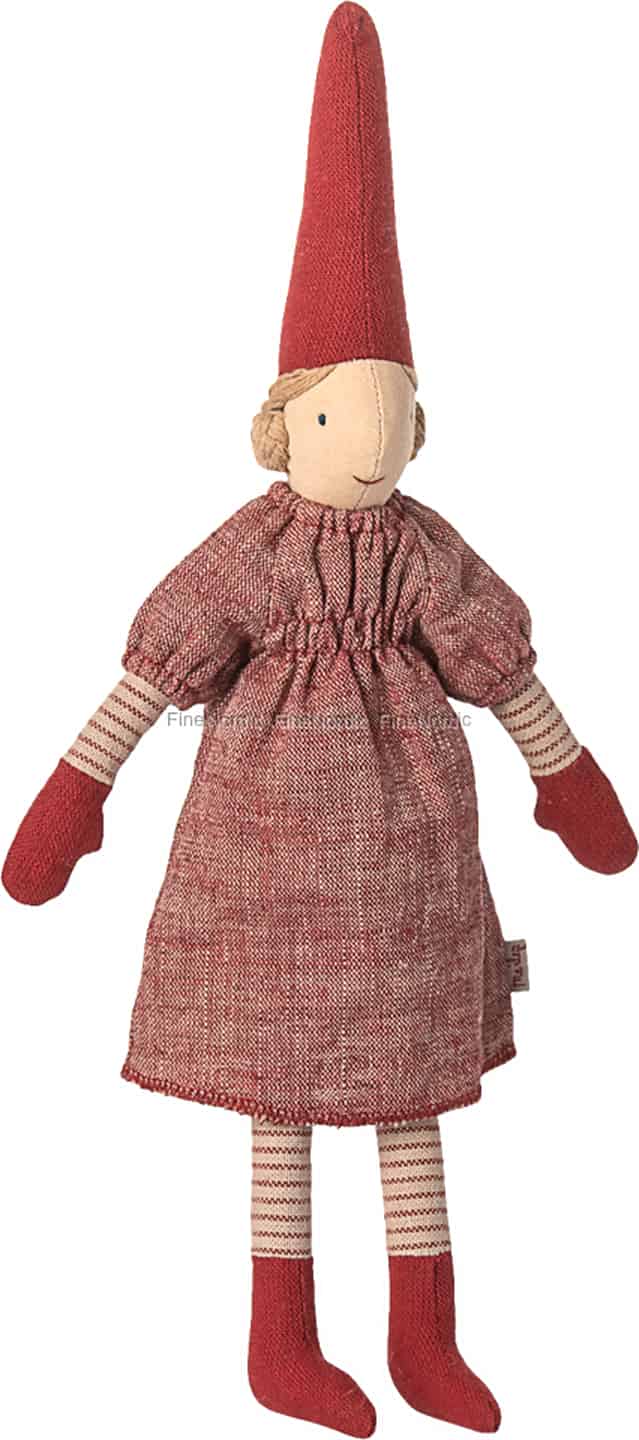 Entworfen mit dem zeitlosen Charme, für den Maileg bekannt ist, ist dieser Wichtel nicht nur eine Dekoration, sondern ein Begleiter für die Weihnachtszeit. Setzen Sie sie auf ein Regal, von wo aus sie die Festvorbereitungen überblicken kann, oder lassen Sie sie der Ehrengast bei der Teeparty eines Kindes sein. Sie ist eine wunderschöne Erinnerung daran, innezuhalten und die kleinen, magischen Momente zu schätzen, die diese Jahreszeit so besonders machen.