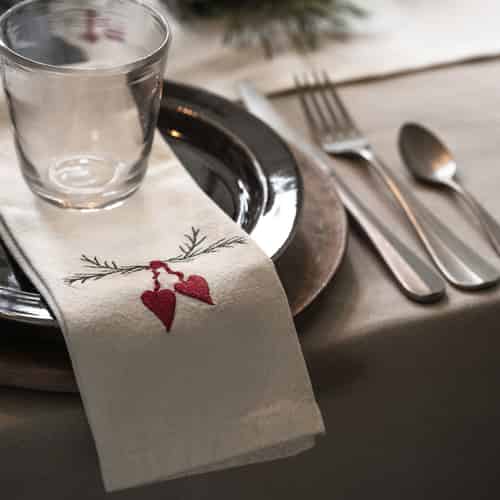 Ib Laursen Stoffserviette Tradition mit Roten Herzen Leinenfarbig