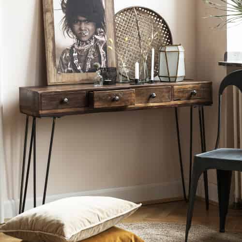 Ib Laursen Konsole mit 4 Schubladen Hergestellt aus Recyceltem Holz und mit Metallbeine Unika