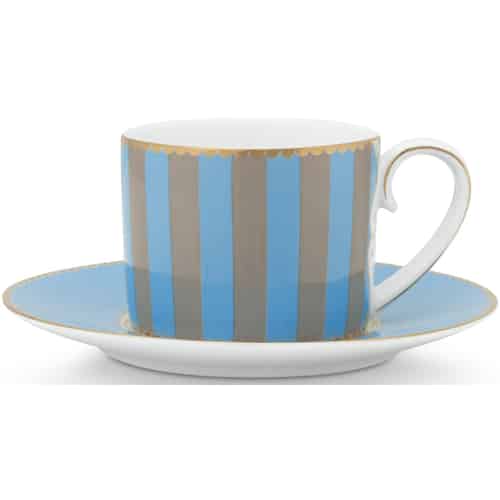 Pip Studio Espressotasse & Untertasse Love Birds Stripes Blau-Khaki