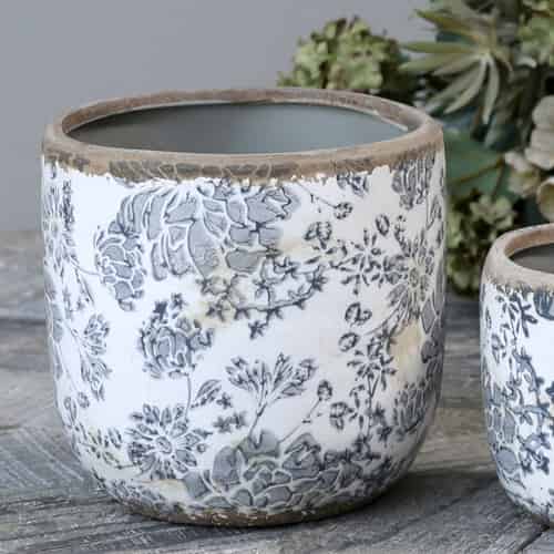 Chic Antique Melun Blumentopf mit Französischem Muster Opal H 16,5 cm