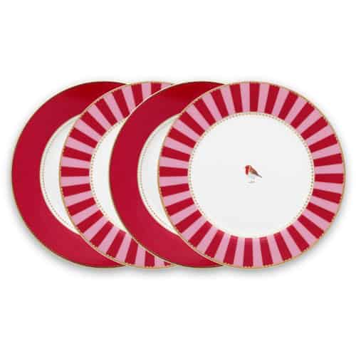 Pip Studio Teller Love Birds Rot-Rosa 21 cm 4er Set in Geschenkbox