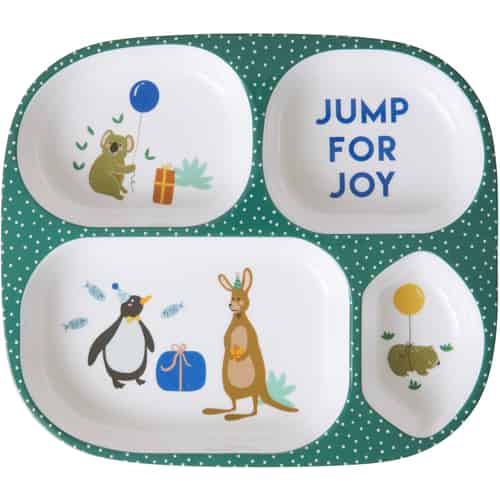Rice Melamin Kinderteller mit 4 Fächern - Party Animal - Grün