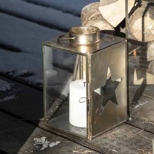 Ib Laursen Laterne mit ausgestanztem Stern in der Tür 3 Glasseiten Messing Klein