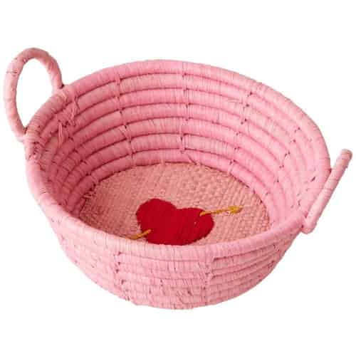 Rice Raffia Brotkorb - Rund mit Herz - Rosa