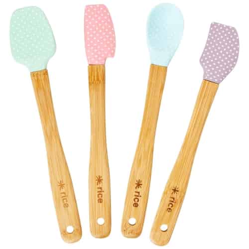 Rice Silikon Teigschaber - Bambusgriff - Farben und Weiße Punkte - 4er Set