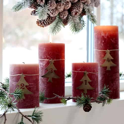Chic Antique Weihnachtsbäume mit Adventszahlen 4er Set Antik-Messing
