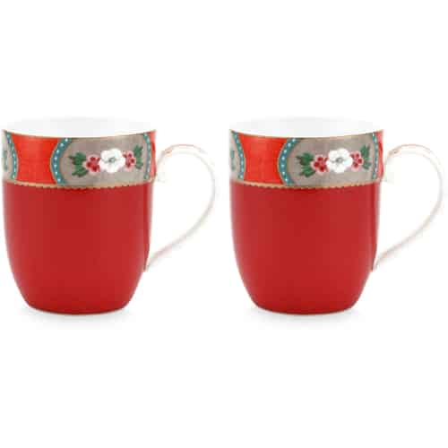 Pip Studio Tassen Klein Blushing Birds Rot 2er Set in Geschenkbox