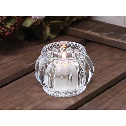 Chic Antique Teelichthalter mit kleinen Rillen und Perlenrand Klar