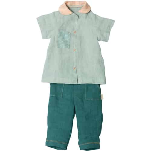 Maileg Kaninchen-kleidung - Maxi Hemd und Hose - Petrol Green (Größe 3)