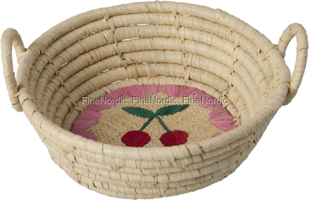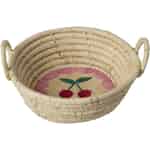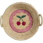 Entdecken Sie eine bezaubernde Art, Ihre kleinen Schätze aufzubewahren. Dieses charmante, kleine Körbchen aus natürlichem Raffia bringt mit seinem süßen, gestickten Kirschmotiv einen Hauch sommerlicher Fröhlichkeit in jede Ecke.