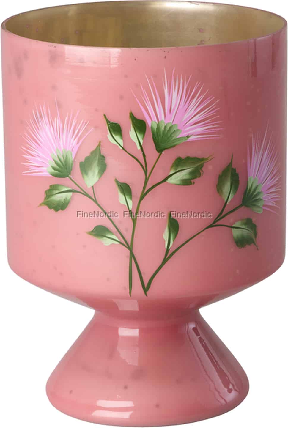 Rice Glasvase - Fuß - Rosa - Handbemalte Blumen
