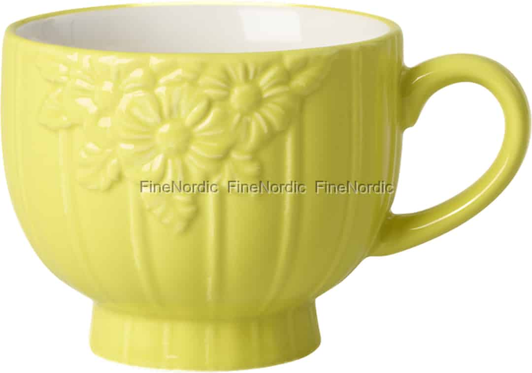 Es liegt eine besondere Freude in den einfachen, schönen Dingen, die wir täglich benutzen, und dieser Keramikbecher von Rice fängt dieses Gefühl perfekt ein. Sein Design ist eine Hommage an den Charme der Natur, mit zarten, geprägten Blumen auf einer sanft gerippten Oberfläche, die an eine sonnenverwöhnte Wiese erinnert. Die fröhliche gelbe Glasur ist wie eingefangener Sonnenschein, der Ihre Stimmung hebt und Ihr Küchenregal erhellt. Jedes Detail, vom eleganten Sockelfuß bis zum kontrastierenden cremefarbenen Inneren, wurde sorgfältig durchdacht, um ein Stück zu schaffen, nach dem Sie immer wieder greifen werden.